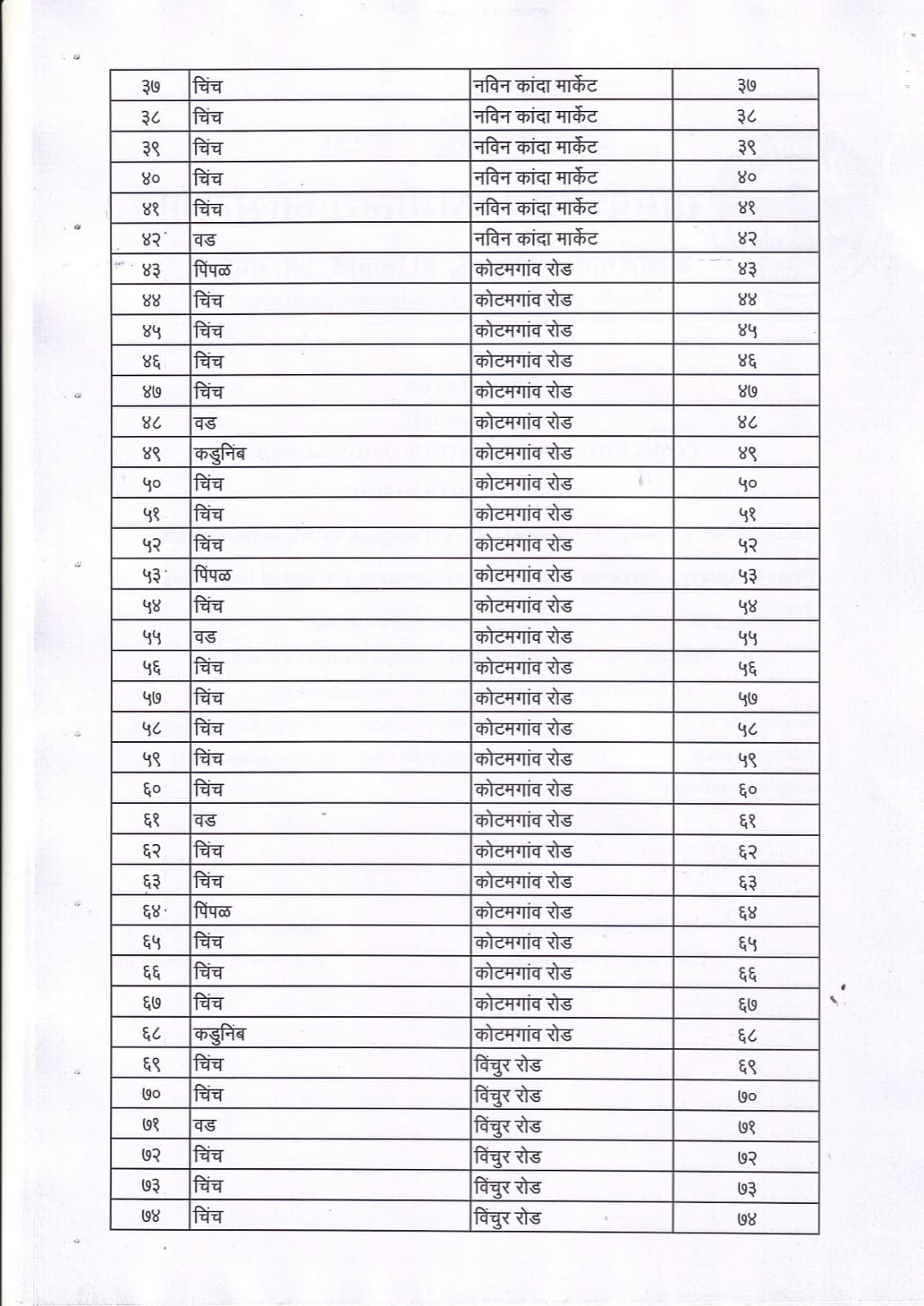 वृक्ष गणना नोंद व प्रसिद्ध यादी - 2