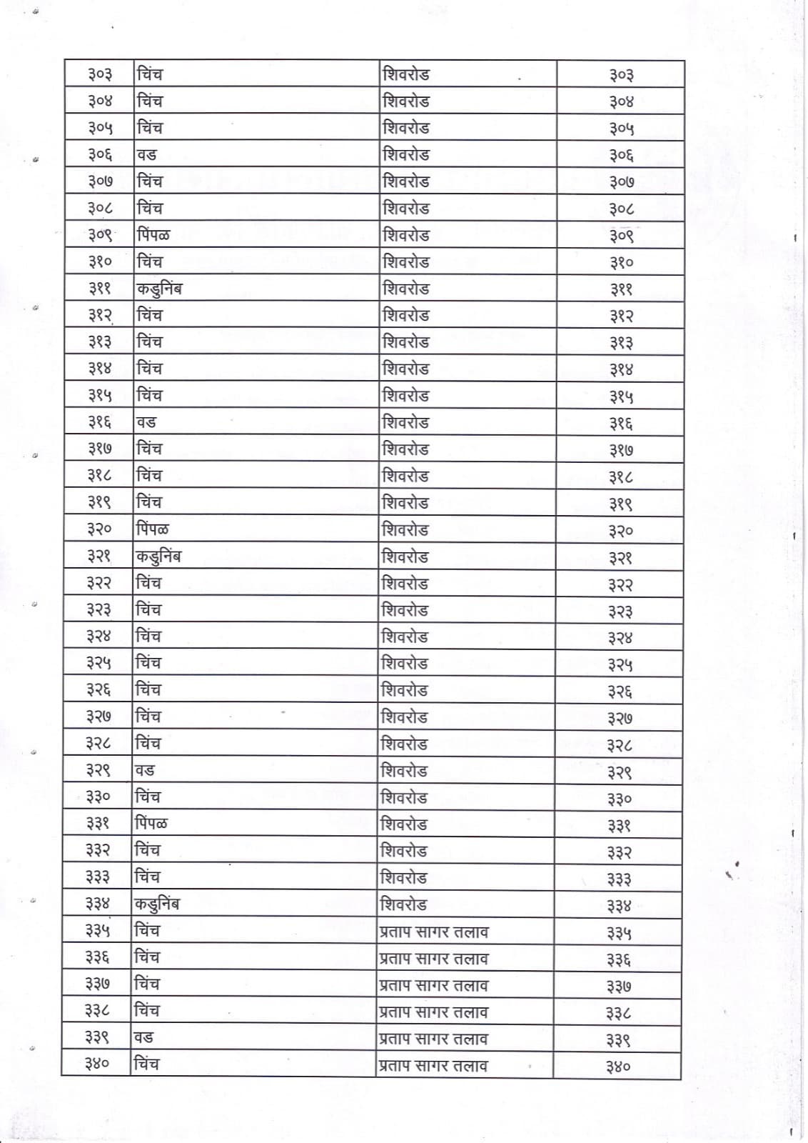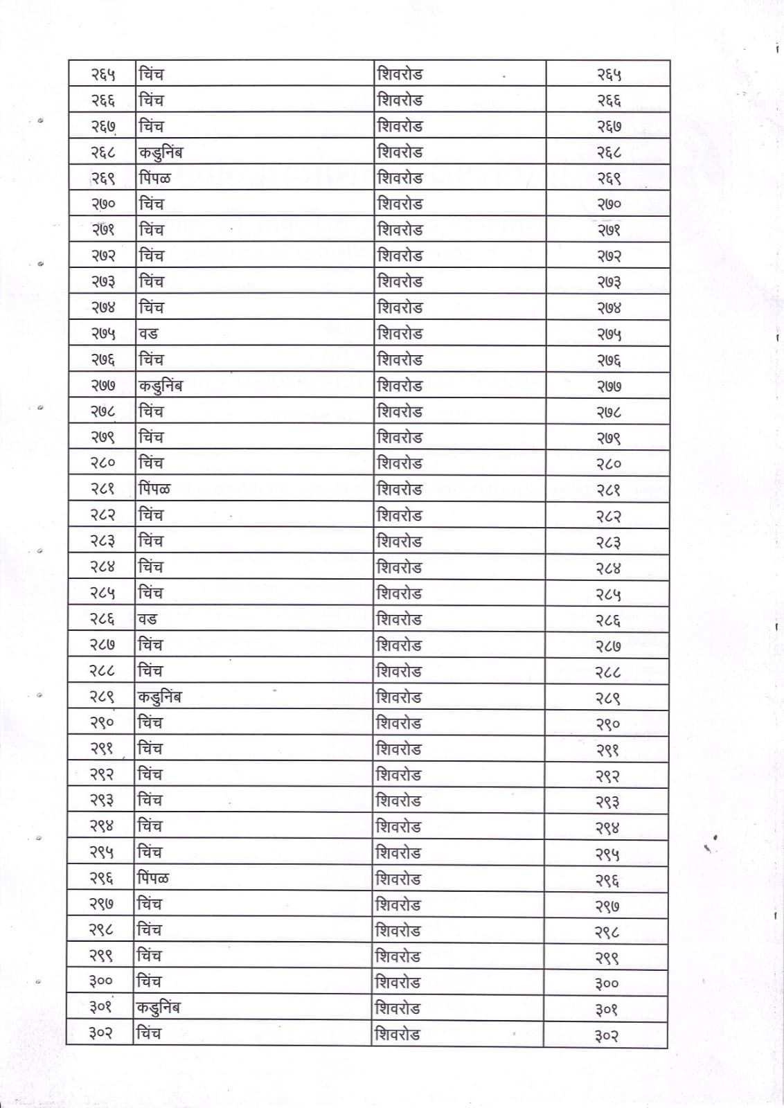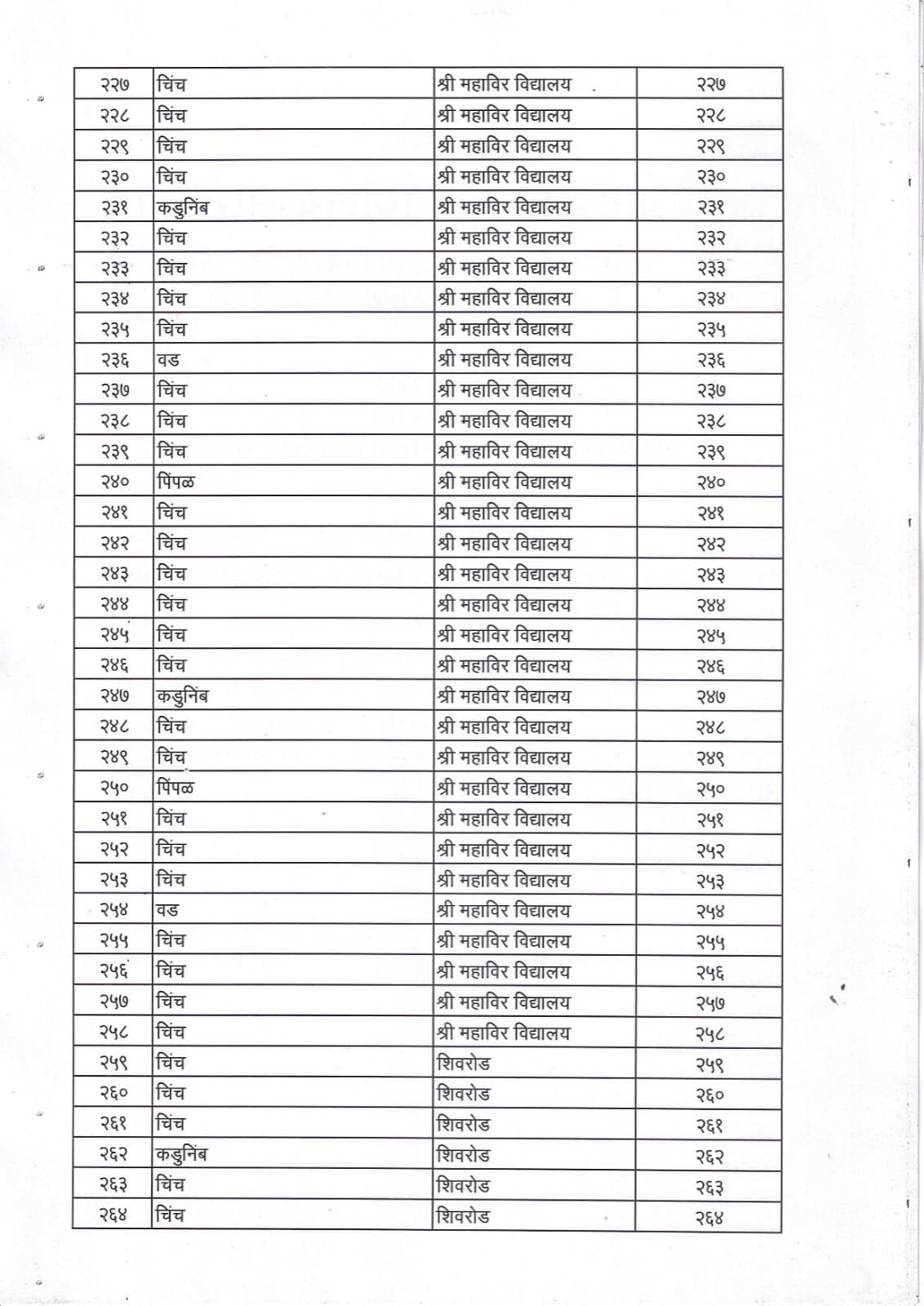 वृक्ष गणना नोंद व प्रसिद्ध यादी - 9