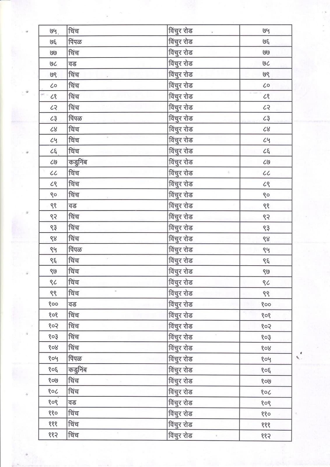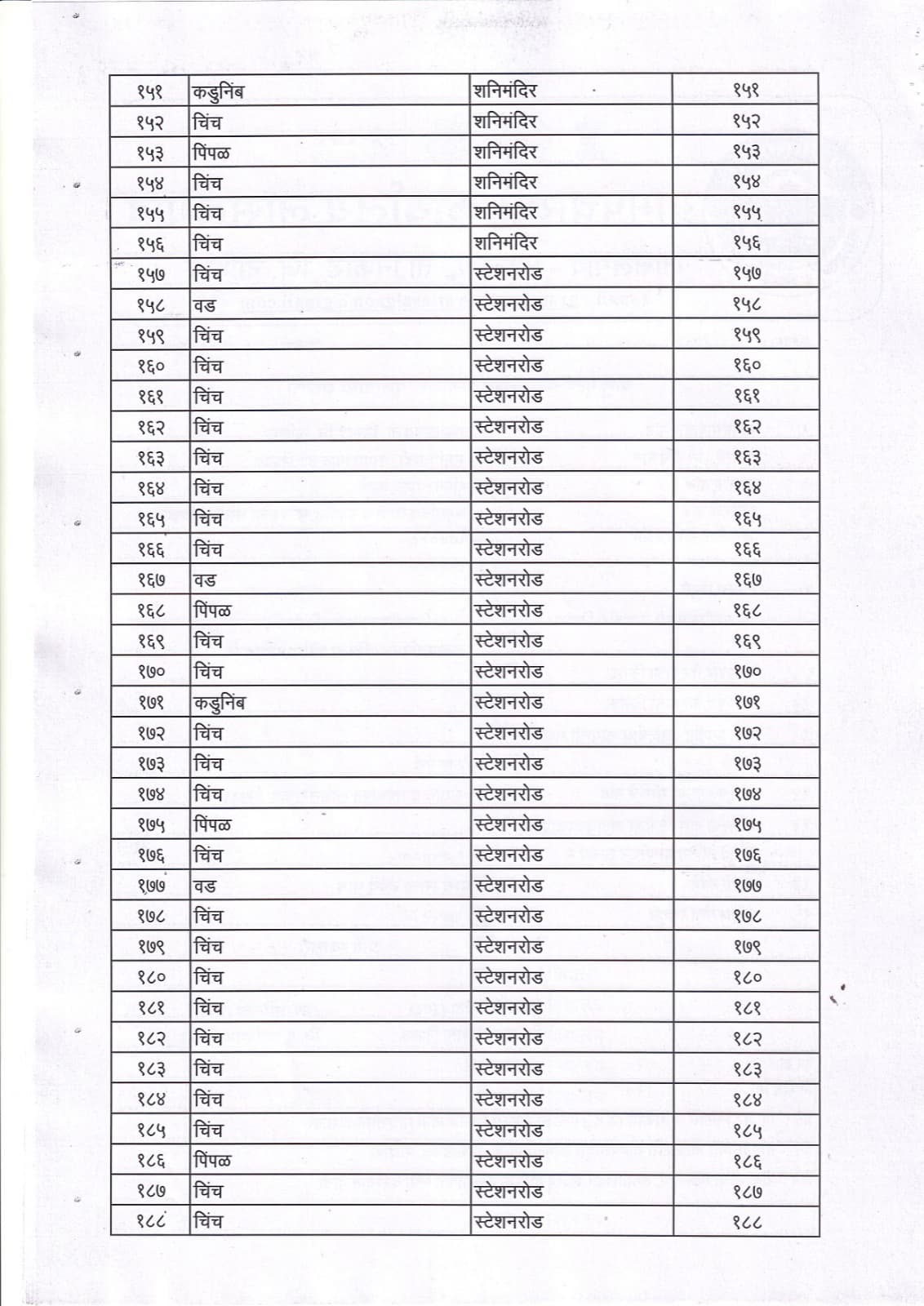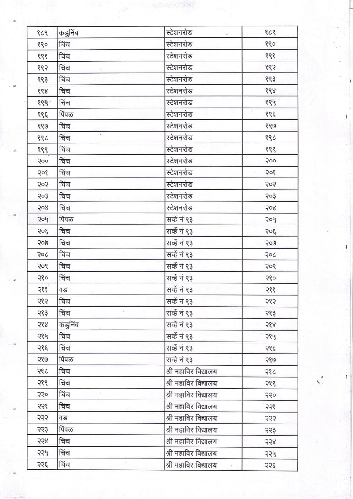 वृक्ष गणना नोंद व प्रसिद्ध यादी - 9