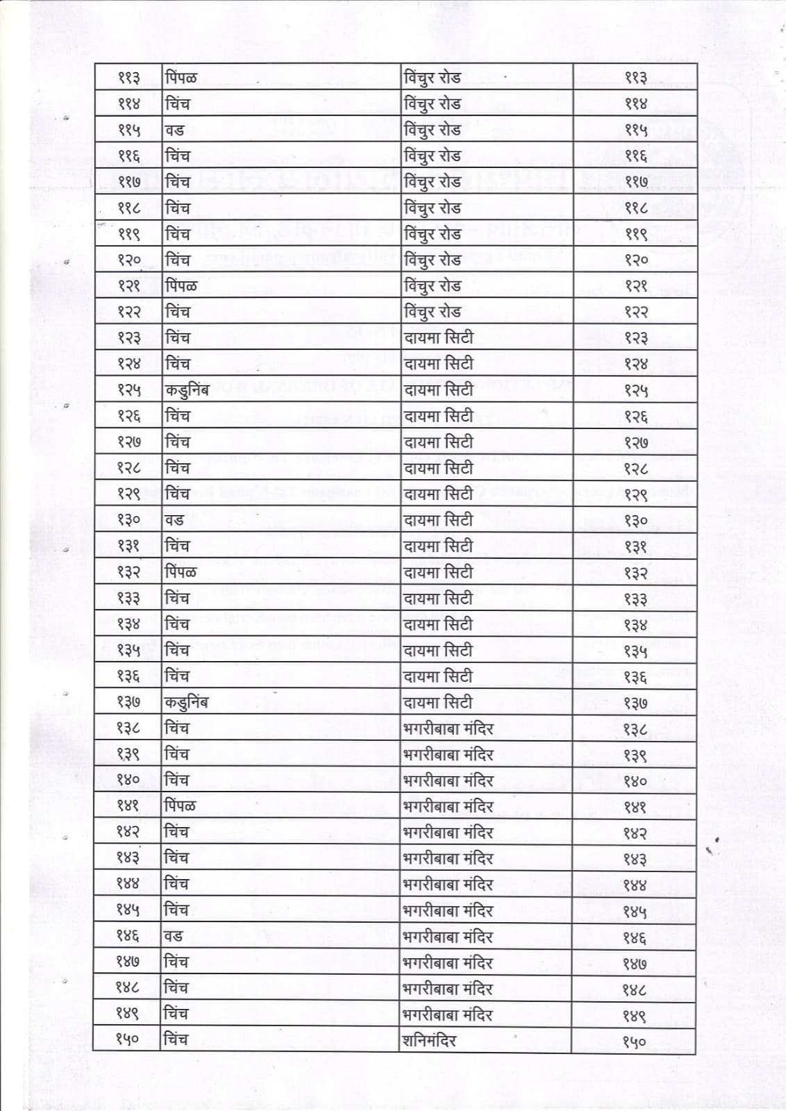 वृक्ष गणना नोंद व प्रसिद्ध यादी - 1