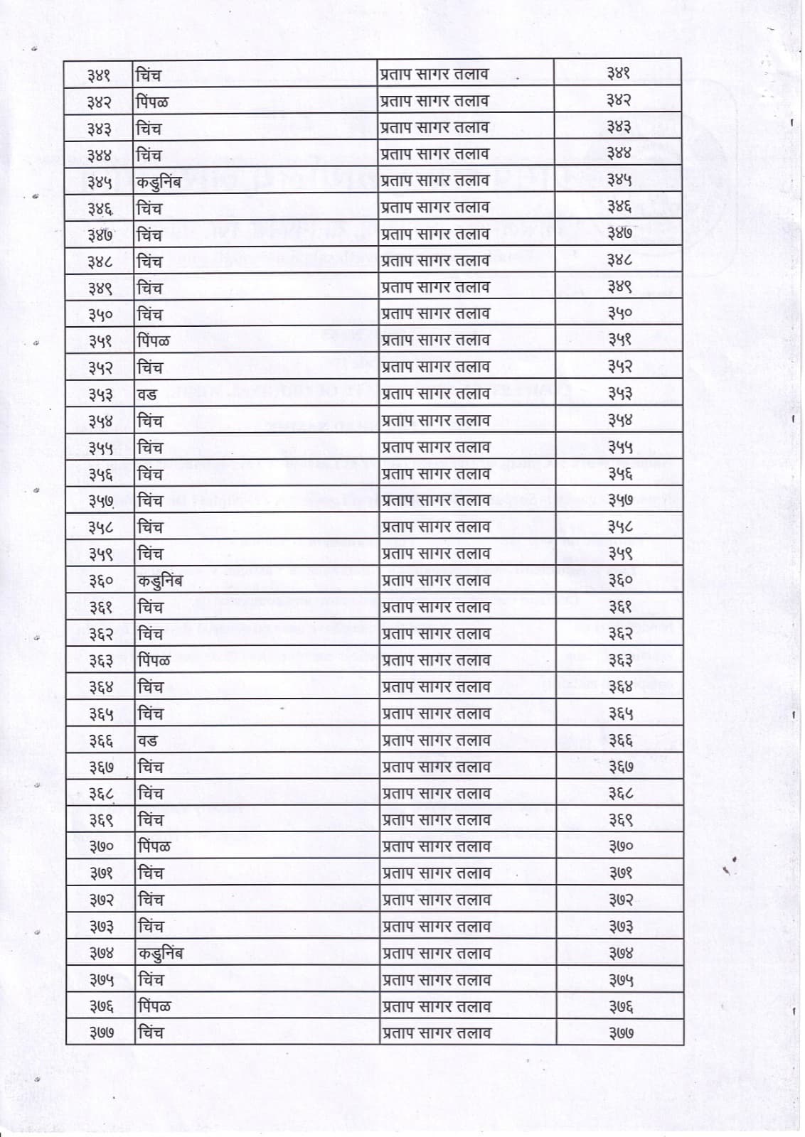 वृक्ष गणना नोंद व प्रसिद्ध यादी - 2